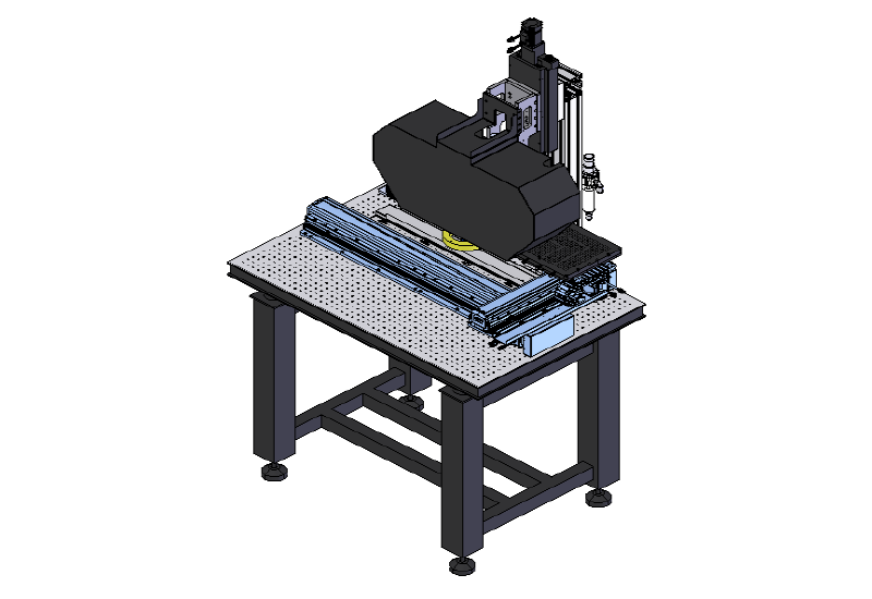 · HBM 자동 Align 및 Contact 장비 · Linear Robot와 Linear Scale로 정밀한 반복 정밀도 적용. · 3㎛이내의 위치 반복성에 대응 가능 · 2D Area Camera으로 미세 HBM Align, Dual Optical System으로 HBM Socket과 MEMS Socket의 초정밀 Align을 구현.